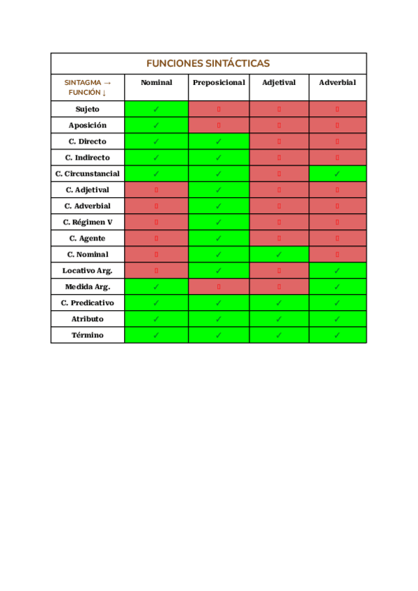 Tabla-resumen de las funciones que pueden hacer los sintagmas. 2º de Bachillerato 2025.
