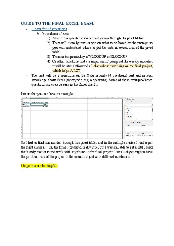 FInal exam guide for the excel class! / Apuntes para el final de la asignatura Hojas de calculo nivel avanzado