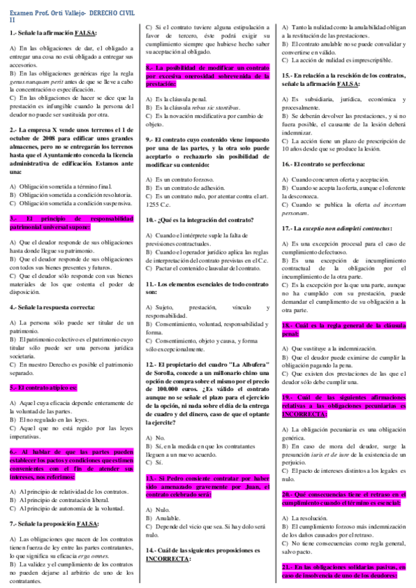 Examen final convocatoria ordinaria civil II, profesor Antonio Orti Vallejo