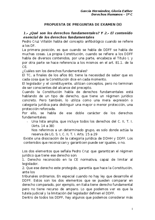 Preguntas Derechos Humanos (DDHH) resueltas en clase. Profesor Juan Francisco de Asís Sánchez Barrilao