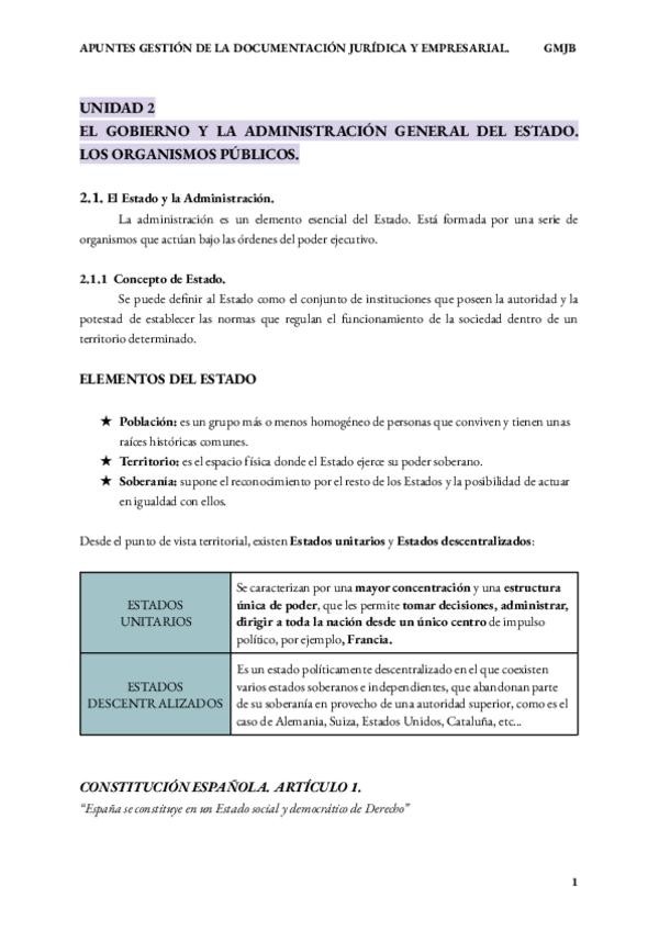 EL GOBIERNO Y LA ADMINISTRACIÓN GENERAL DEL ESTADO. LOS ORGANISMOS PÚBLICOS.