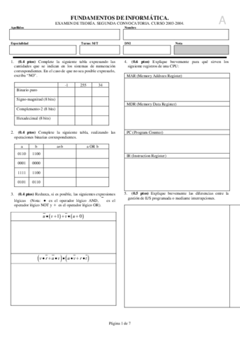 He publicado nuevos examenes de 1º Informática: Exámenes 2002 - 2008 (cont)