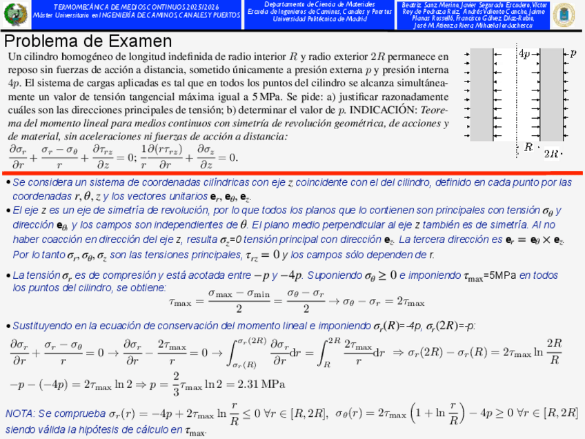 Solución del examen 1º parcial octubre 2025 termomecánica de medios continuos