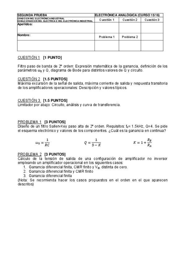 He publicado nuevos examenes de 2º Electrónica Analógica: EXAM SEPTIEMBRE