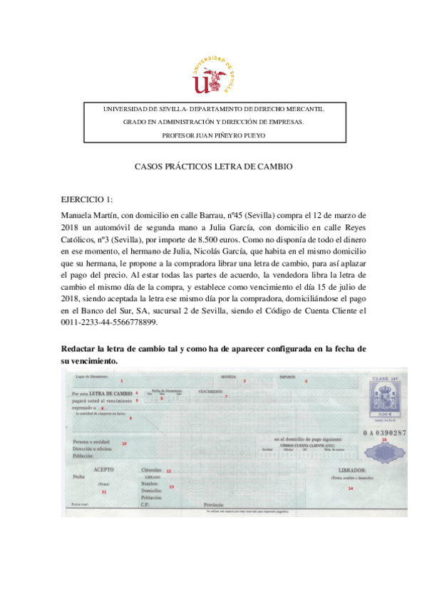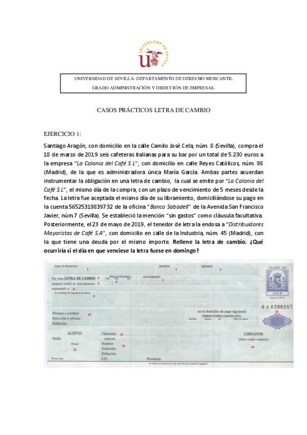 He publicado nuevos ejercicios de 1º Derecho Mercantil: Letras de cambio derecho mercantil