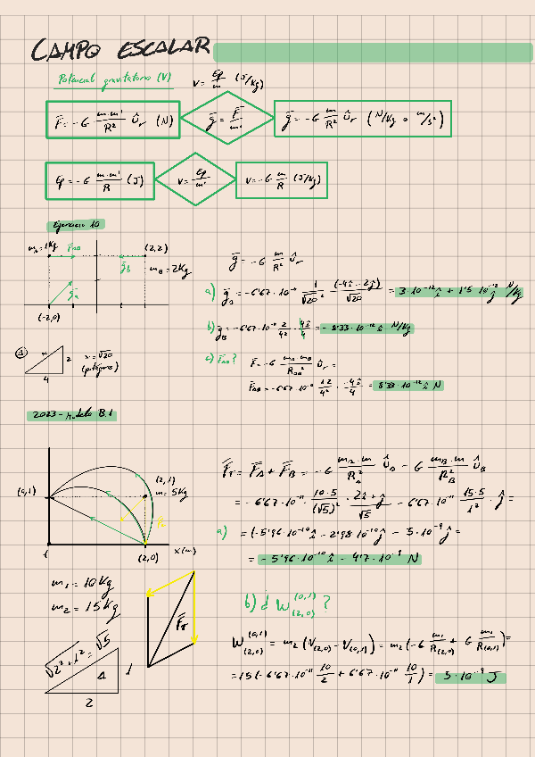 Apuntes y ejercicios de Física: Campo Gravitatorio, Campo eléctrico, Campo magnético, Ondas electromagnéticas y Física moderna