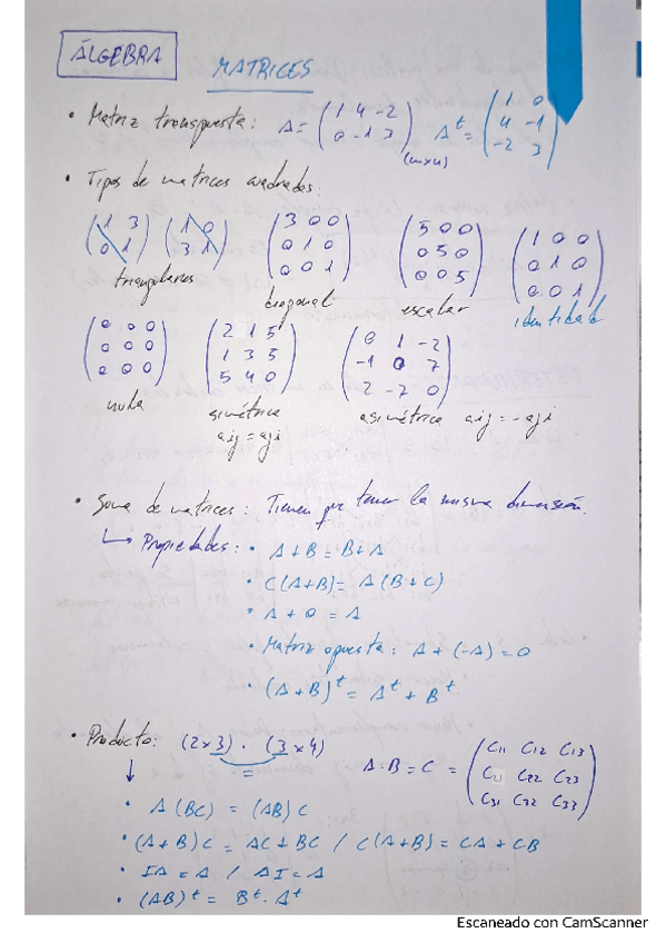Formulario de Álgebra de matemáticas segundo de bachillerato