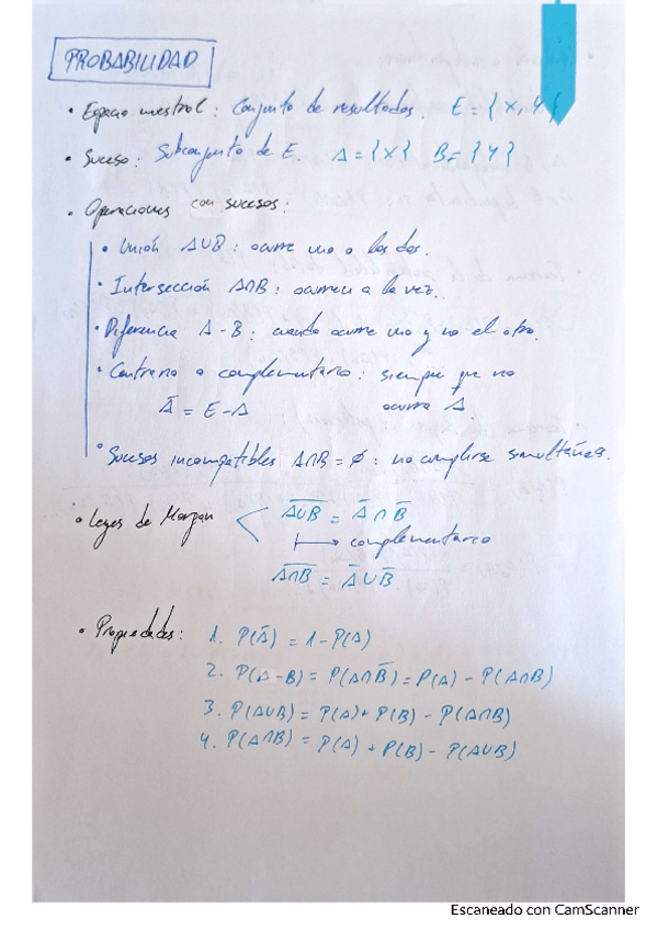 Formulario de Estadística y Probabilidad de matemáticas segundo de bachillerato