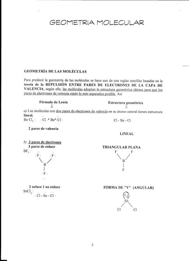 Predicción de geometría molecular basándose en la teoría de repulsión entre pares de electrones de la capa de valencia