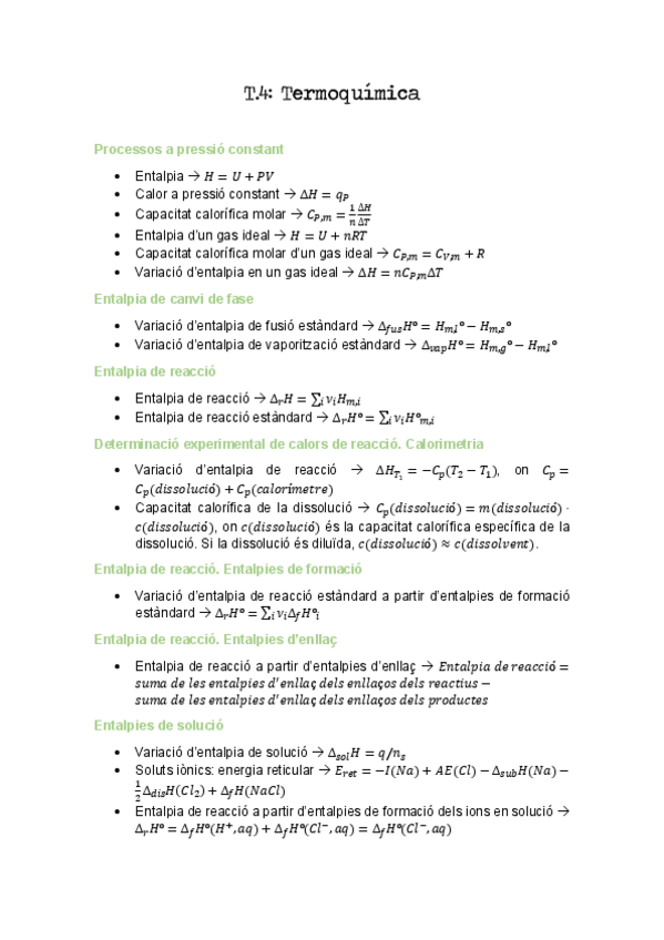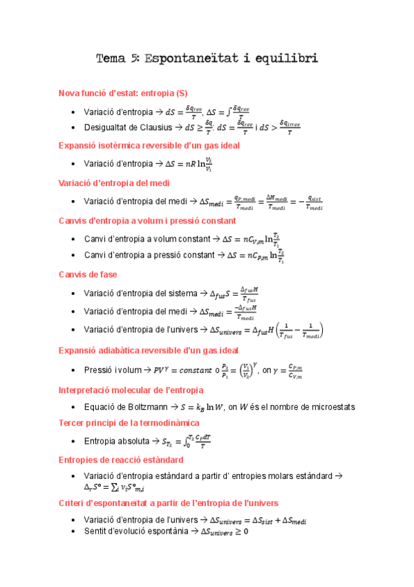 He publicado nuevos apuntes de 1º Termodinámica y Cinética: Formularis Termodinàmica