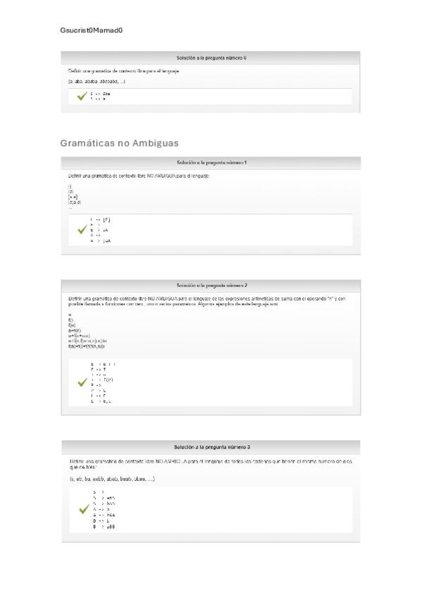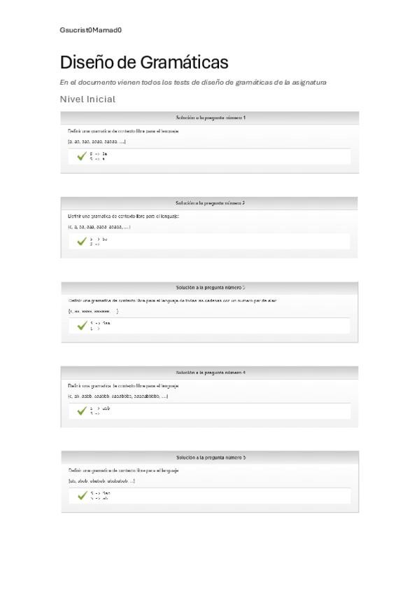 Todos los Tests de Diseño de Gramáticas de la asignatura (Gramáticas no Ambiguas + Gramáticas LL(1))
