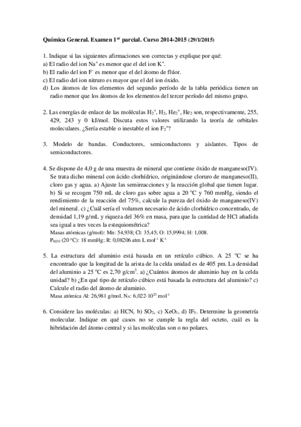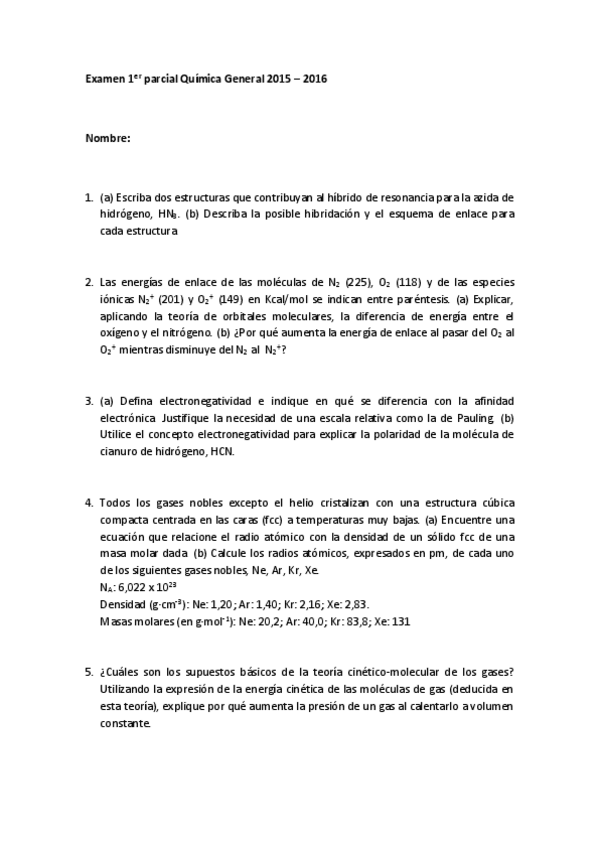 He publicado nuevos examenes de 1º Química General: exámenes primer cuatri