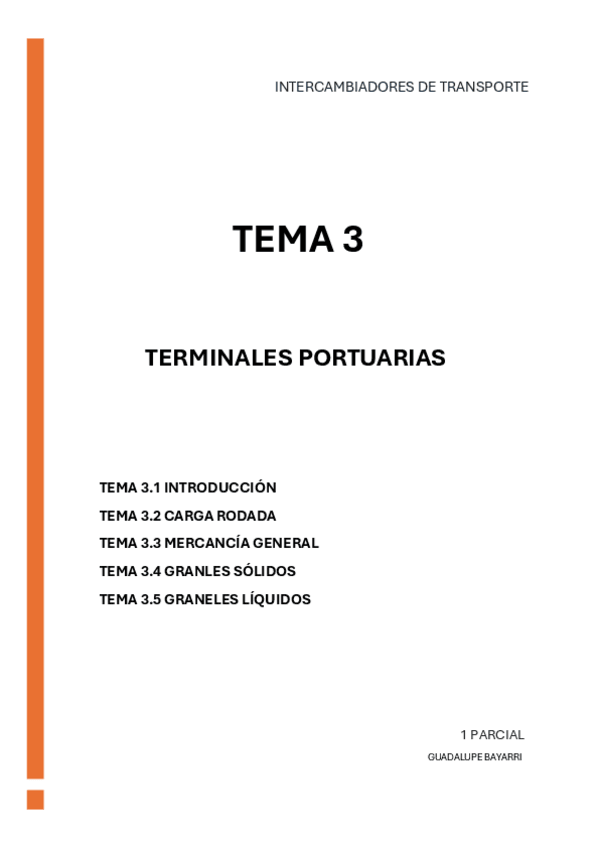 Tema 3.1 Introducción; Tema 3.2 Carga Rodada; Tema 3.3 Mercancía General; Tema 3.4 Graneles sólidos; Tema 3.5 Graneles líquidos