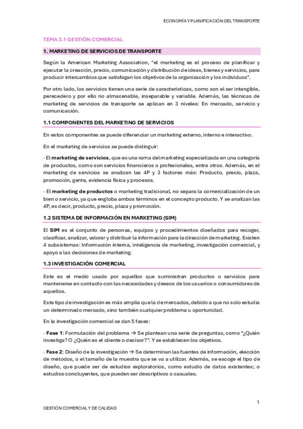 Tema 3.1 Gestión comercial; Tema 3.2 Gestión de la calidad en el transporte