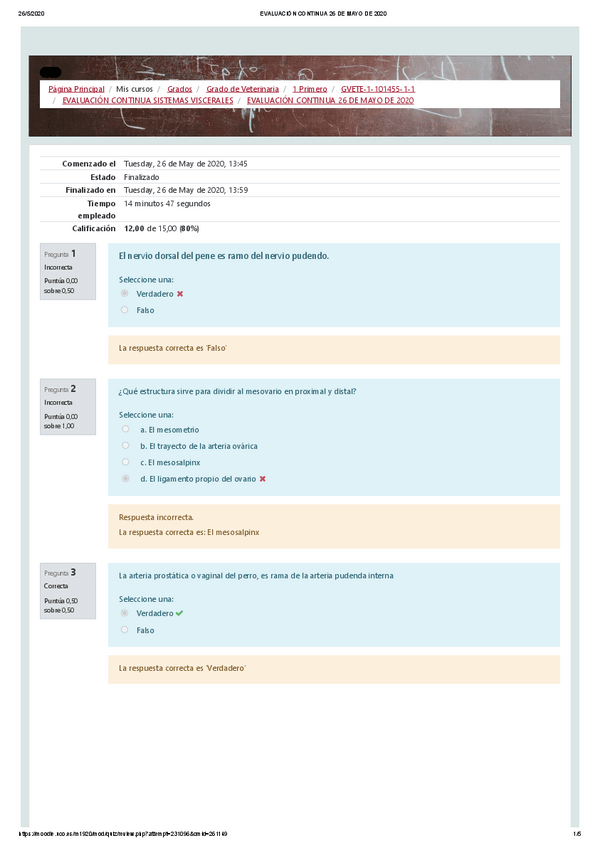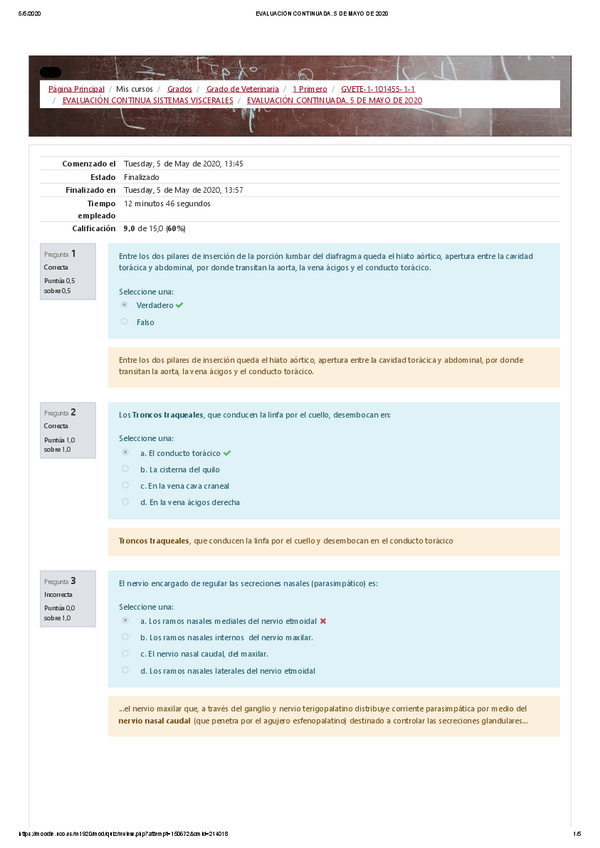 He publicado nuevos apuntes de 1º Anatomía Sistemática: Test evaluación continua - visceras