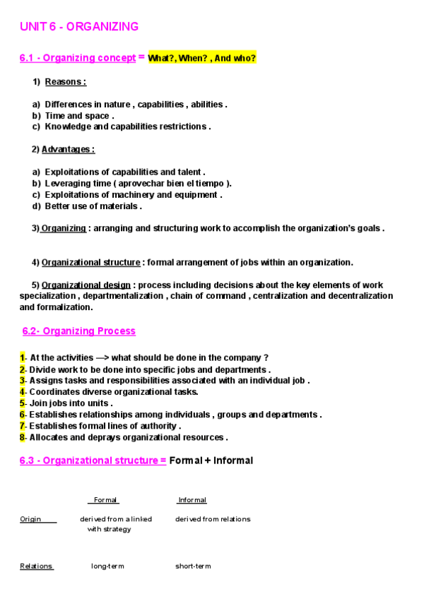 He publicado nuevos apuntes de 1º Administración de Empresas: UNIT-6-ORGANIZING.pdf