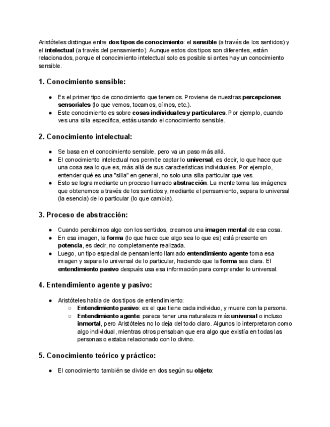 -El Primer Motor Inmóvil (metafísica y movimiento). -El Conocimiento en Aristóteles (epistemología).