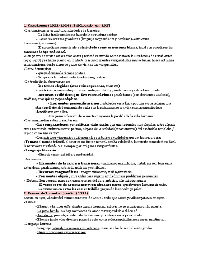 Este documento ofrece un resumen detallado y claro de la evolución poética de Federico García Lorca, desde Canciones hasta Diván del Tamarit. Analiza los temas, el estilo, el lenguaje literario, la métrica y la influencia de las vanguardias en cada obra.