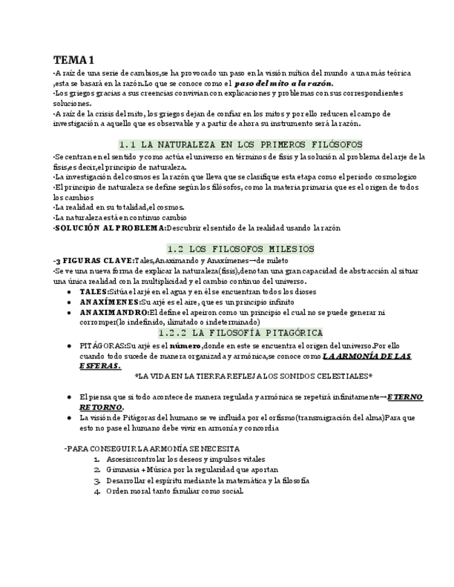 Este documento ofrece un resumen completo sobre el paso del mito a la razón en la filosofía griega y los principales filósofos antiguos. Incluye las aportaciones de los presocráticos (Tales, Anaximandro, Heráclito, Parménides, Empédocles, Demócrito…), así