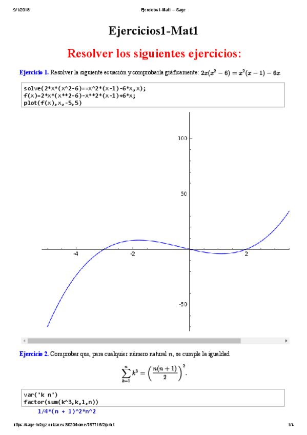 He publicado nuevos practicas de 1º Matemáticas I: Ejercicios1-Mat1 -- Sage.pdf