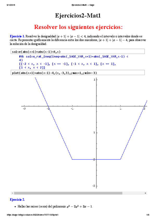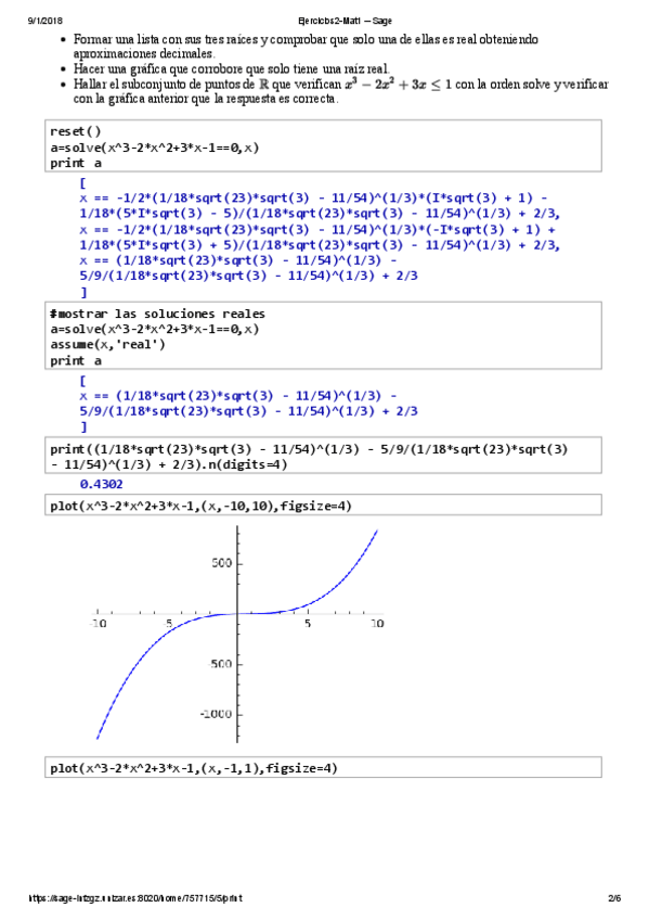 He publicado nuevos practicas de 1º Matemáticas I: Ejercicios2-Mat1 -- Sage.pdf