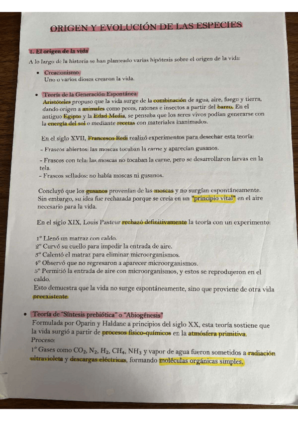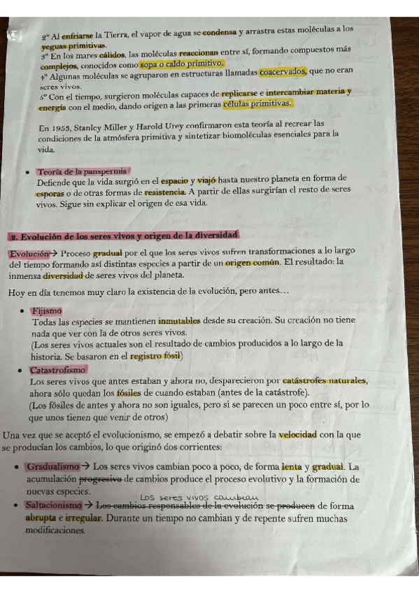 Hipótesis sobre el origen de la vida, teorías evolutivas, evidencias de la evolución, mecanismos evolutivos, consecuencias de la evolución,...