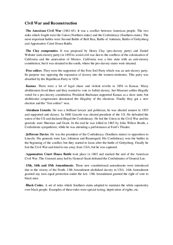 He publicado nuevos apuntes de 1º Estudios Culturales en Lengua Inglesa II: 2. The US Civil War and Reconstruction.pdf