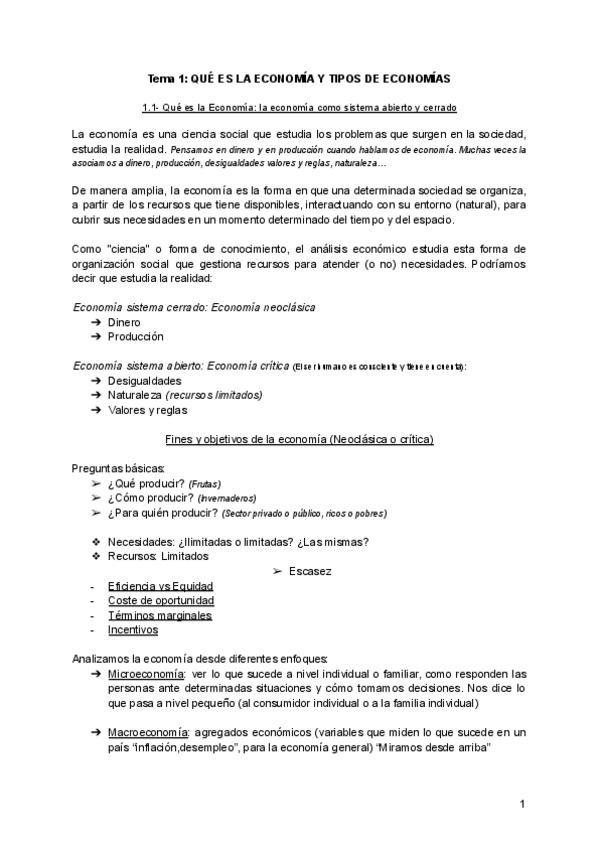 Tema 1-2 de economía con diapositivas de la profesora y ampliado con información de año anterior