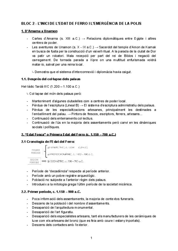 BLOC 2 - L’INICI DE L’EDAT DE FERRO I L’EMERGÈNCIA DE LA POLIS