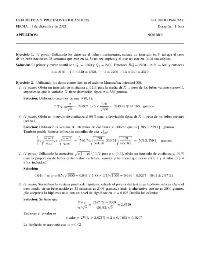 He publicado nuevos examenes de 2º Estadistica y Procesos Estocásticos: Examen-Inferencia-Soluciones.pdf