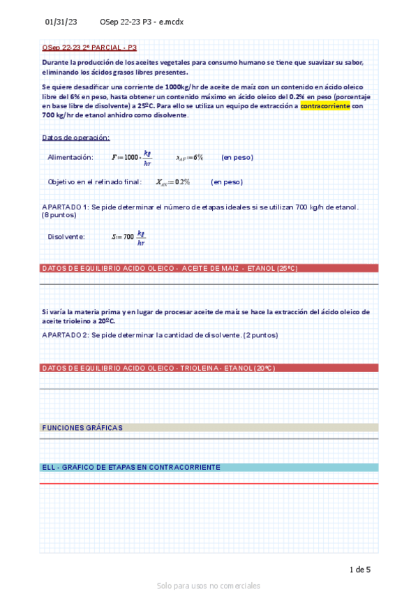 He publicado nuevos examenes de 3º Operaciones de Separación: Examen 2P 22-23 Resuelto