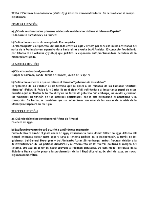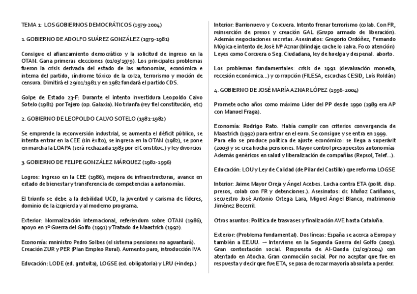 ESQUEMAS CON LAS FECHAS Y LOS ACONTECIMIENTOS MÁS IMPORTANTES DE CADA TEMA. INCLUYE TAMBIÉN PREGUNTAS CORTAS.