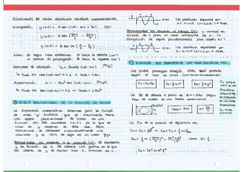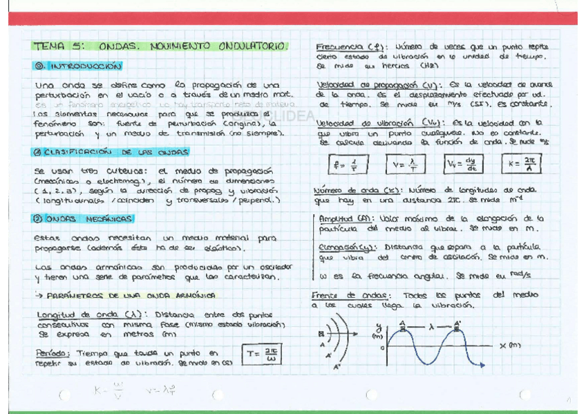 RESUMEN DEL TEMA DE ONDAS Y MOVIMIENTO ONDULATORIO. TEORÍA Y FÓRMULAS RESUMIDAS.