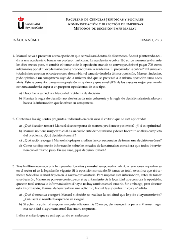 He publicado nuevos practicas de 3º Métodos de Decisión Empresarial: PRACTICA-1.pdf