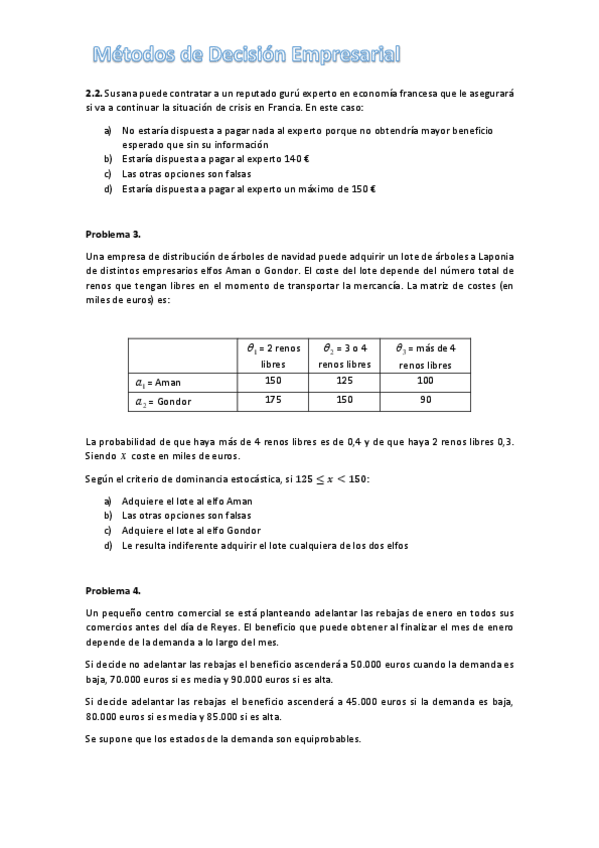 He publicado nuevos ejercicios de 3º Métodos de Decisión Empresarial: ejercicios-examenes-anteriores-tema-2.pdf