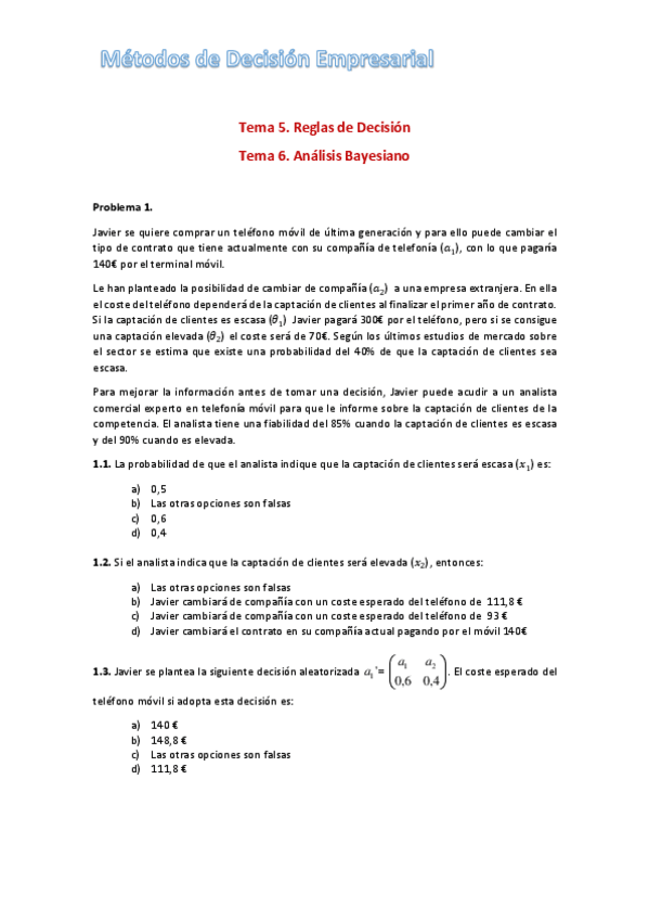 He publicado nuevos ejercicios de 3º Métodos de Decisión Empresarial: Tema-5.-Test-examen.pdf