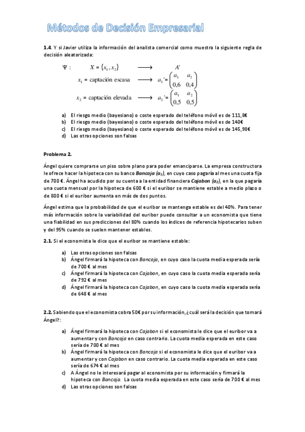 He publicado nuevos practicas de 3º Métodos de Decisión Empresarial: Practica-2.pdf