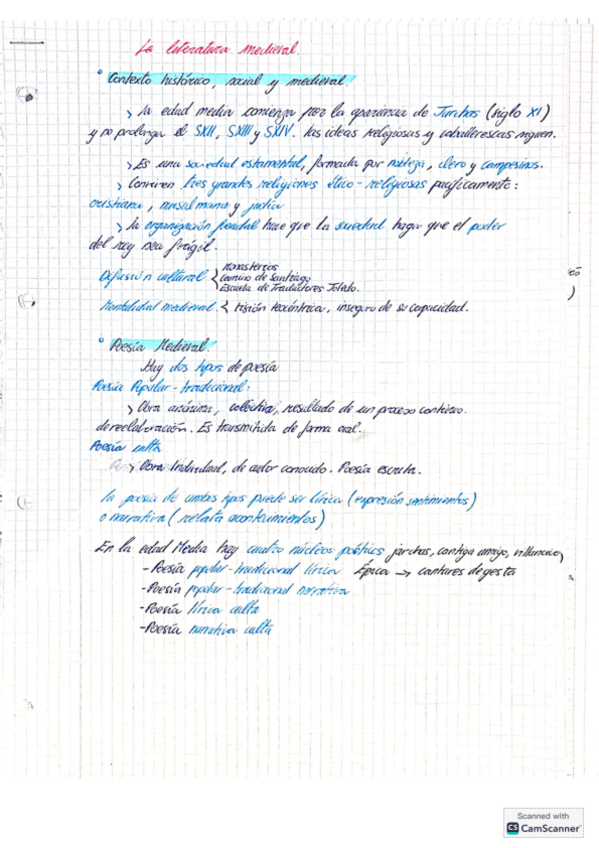 apuntes hechos de la literatura medieval 1bach, resumido por apartados
