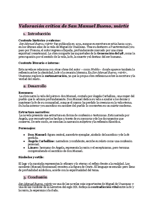 Valoración crítica del libro San Manuel Bueno, mártir