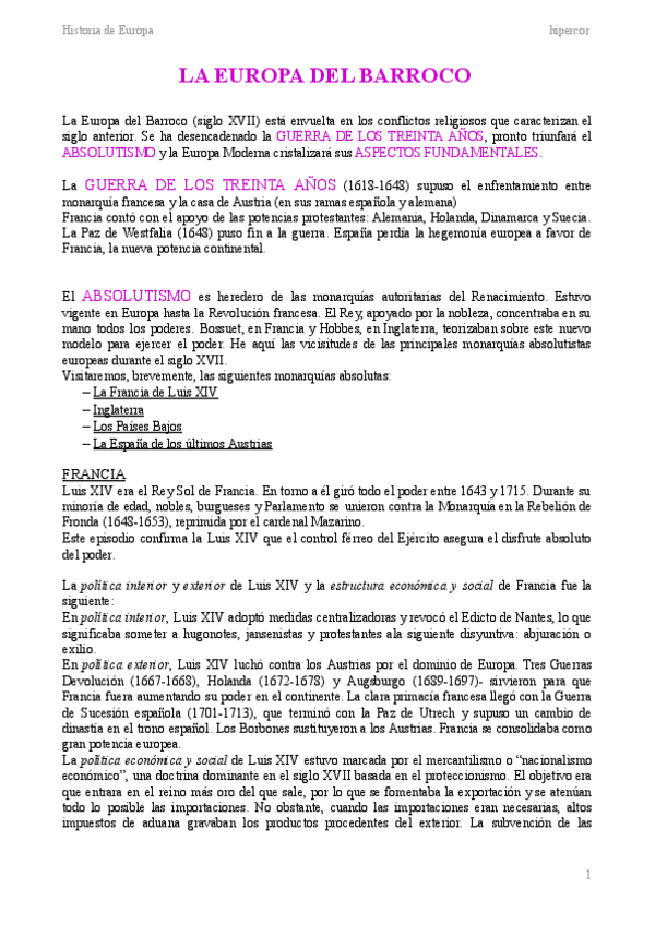 Apuntes de Historia de Europa basados en las digitácoras de Pinilla.