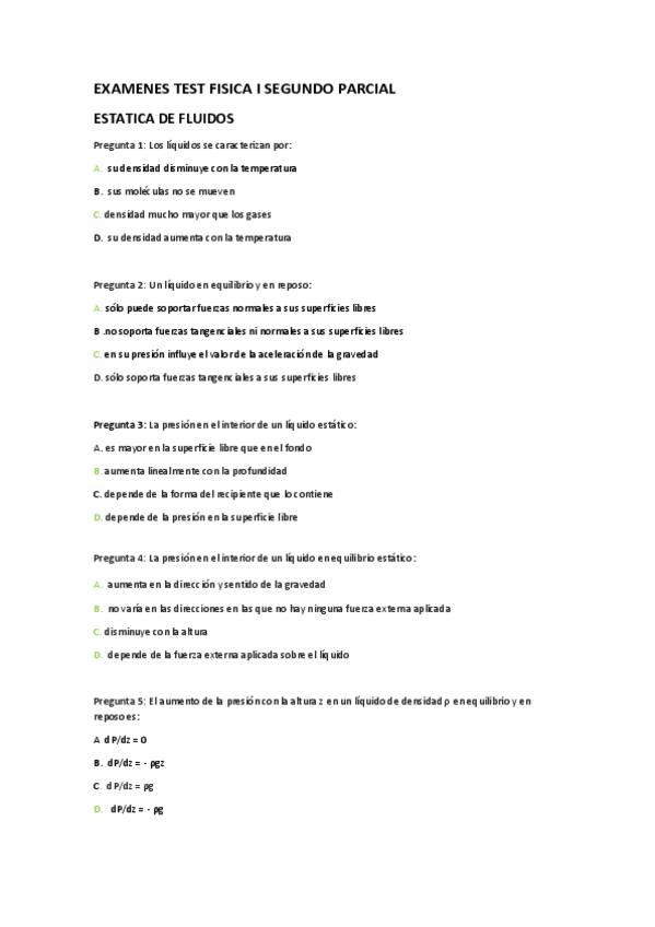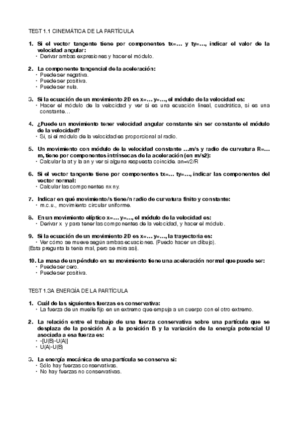 Exámenes (tests) Física I completos
