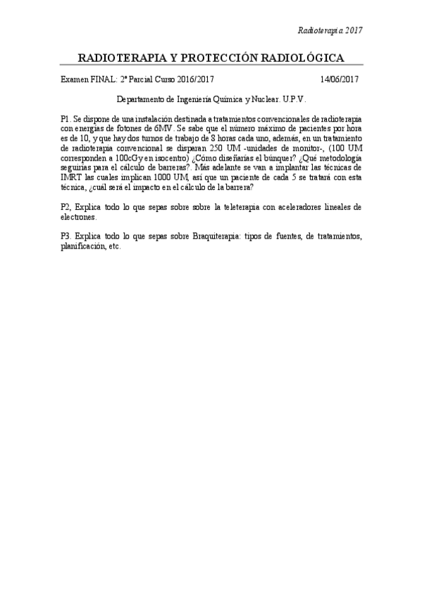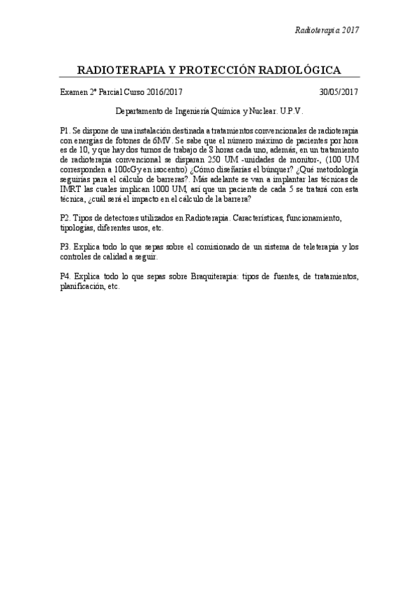 Exámenes 2º Parcial Radioterapia