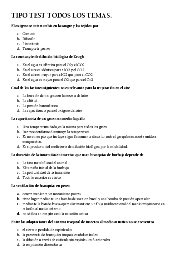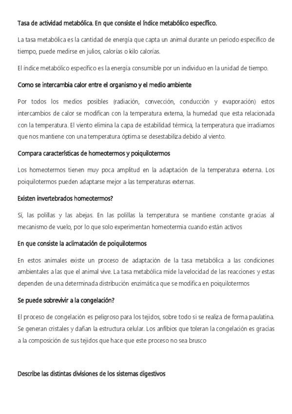 Disponibles todas las preguntas de desarrollo resueltas + recopilación de tipo test Fisiología Animal II