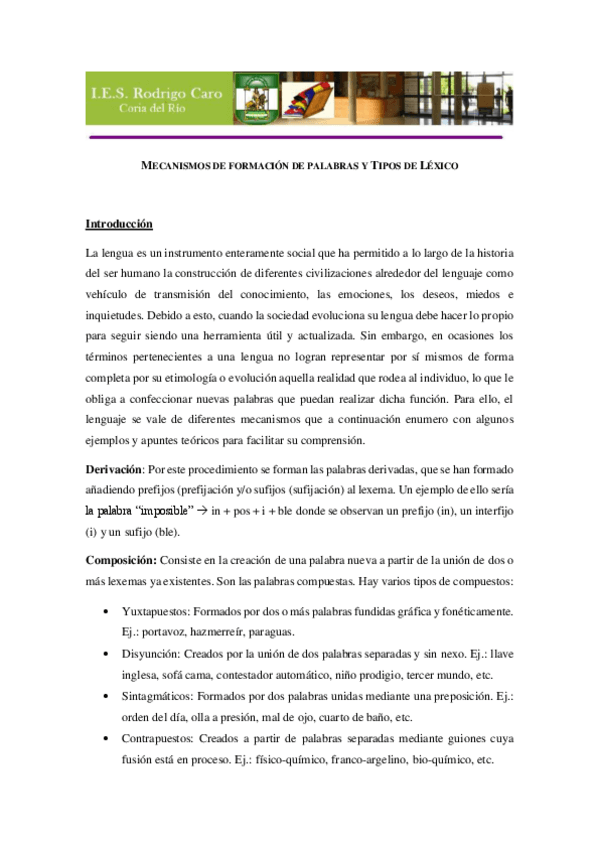 He publicado nuevos ejercicios de 1º Lengua Castellana y Literatura I: MECANISMOS DE FORMACIÓN DE PALABRAS Y TIPOS DE LÉXICO.pdf