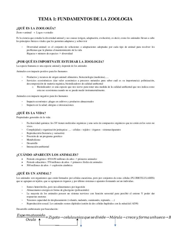 Apuntes de zoologia de los temas del 1 al 10.