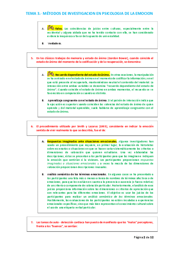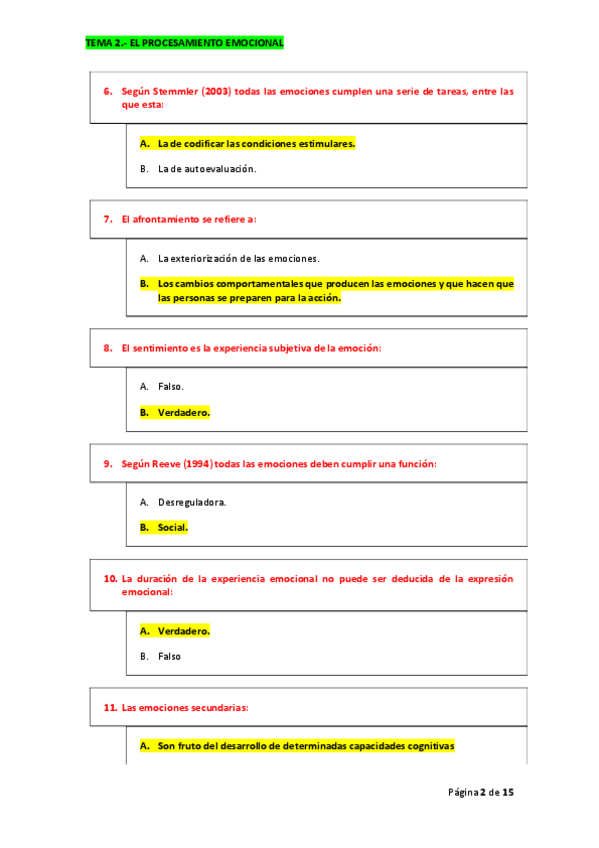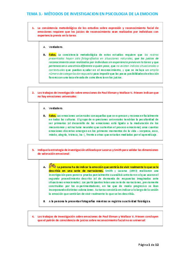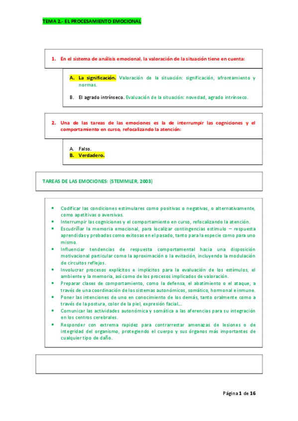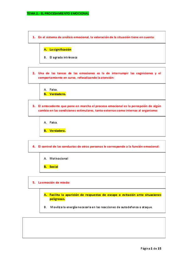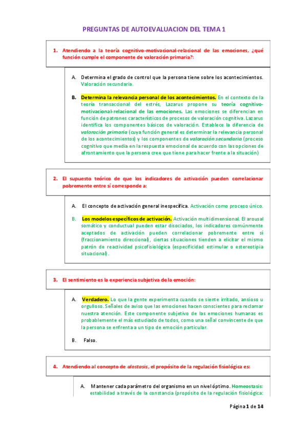 PREGUNTAS DE AUTOEVALUACION DEL TEMA 1 DE EMOCION CON RESPUESTAS COMENTADAS
