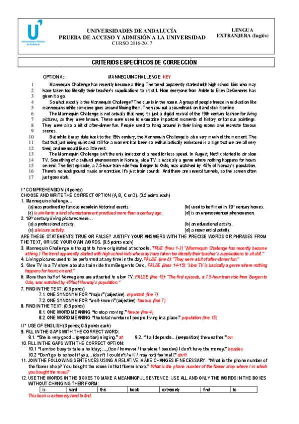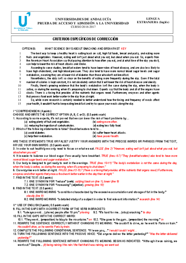 Aquí encontrareis exámenes de Inglés de Selectividad corregidos según los criterios de la asignatura