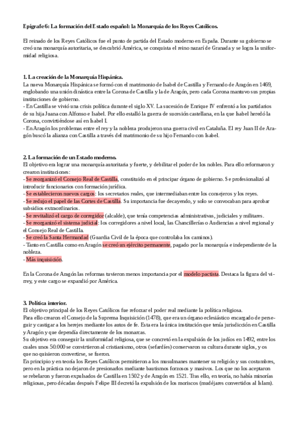 He publicado nuevos apuntes de Historia de España: Epígrafes Bloque 6