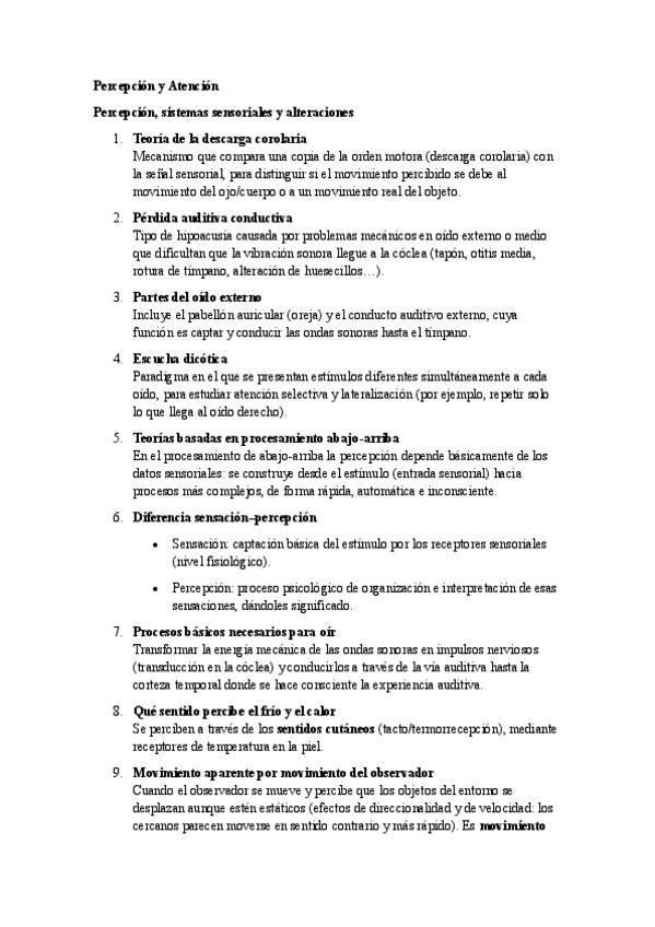 Percepción y Atención Resumen Completo y conceptos de examen