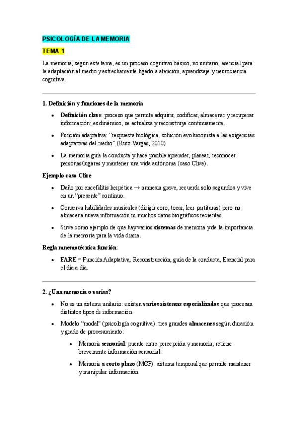Resumen Todos los temas Psicología de la memoria